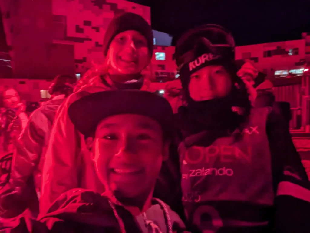 Suddenly, I was standing just a few feet away from legends I’ve admired for years. Scotty James’ signature red gloves were even more vibrant in person! Chloe Kim’s smile lit up the entire area. Maddy Maestro exuded such grace and power. Bea Kim, Mia Brooks, Pat Burgener with his rockstar vibes, and the incredible Japanese trio Yuto Totsuka, Ruka Hirano, and Ayumu Hirano were all there, congratulating each other and soaking in the applause.