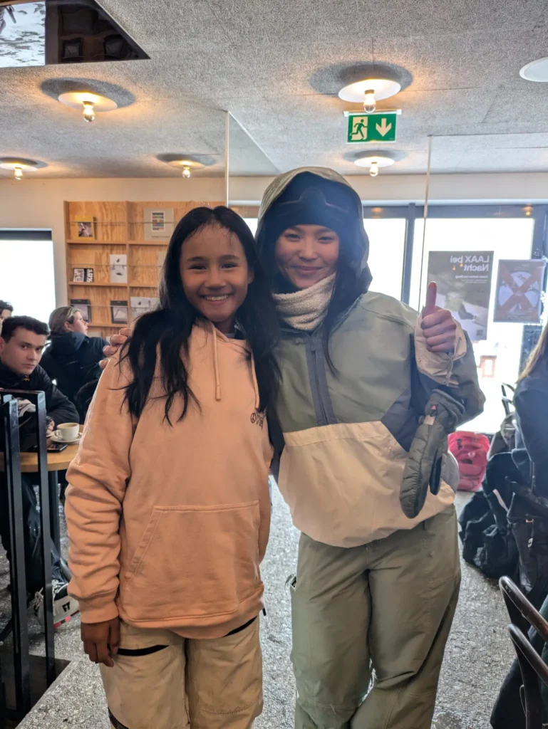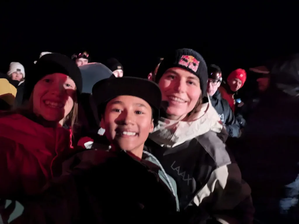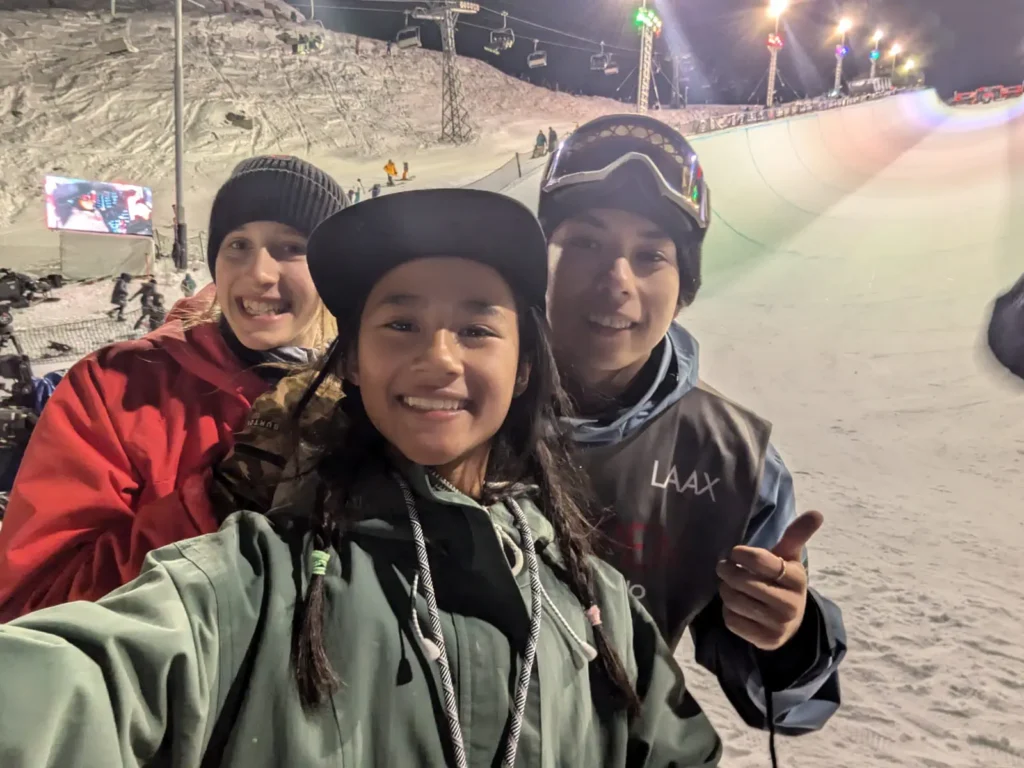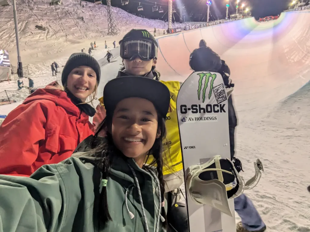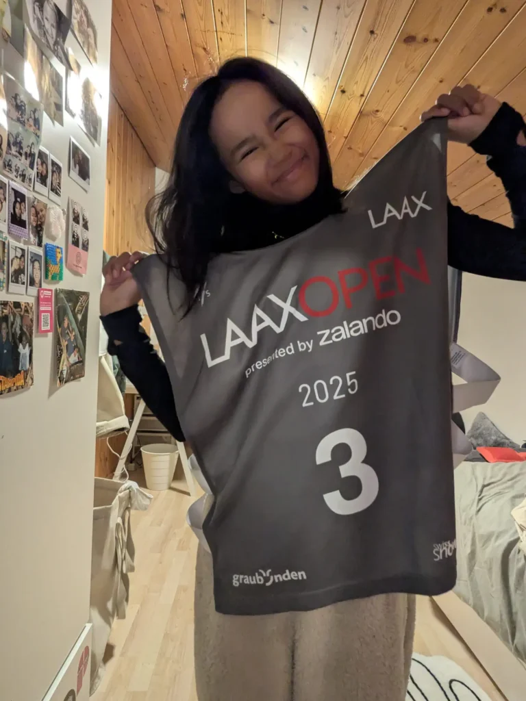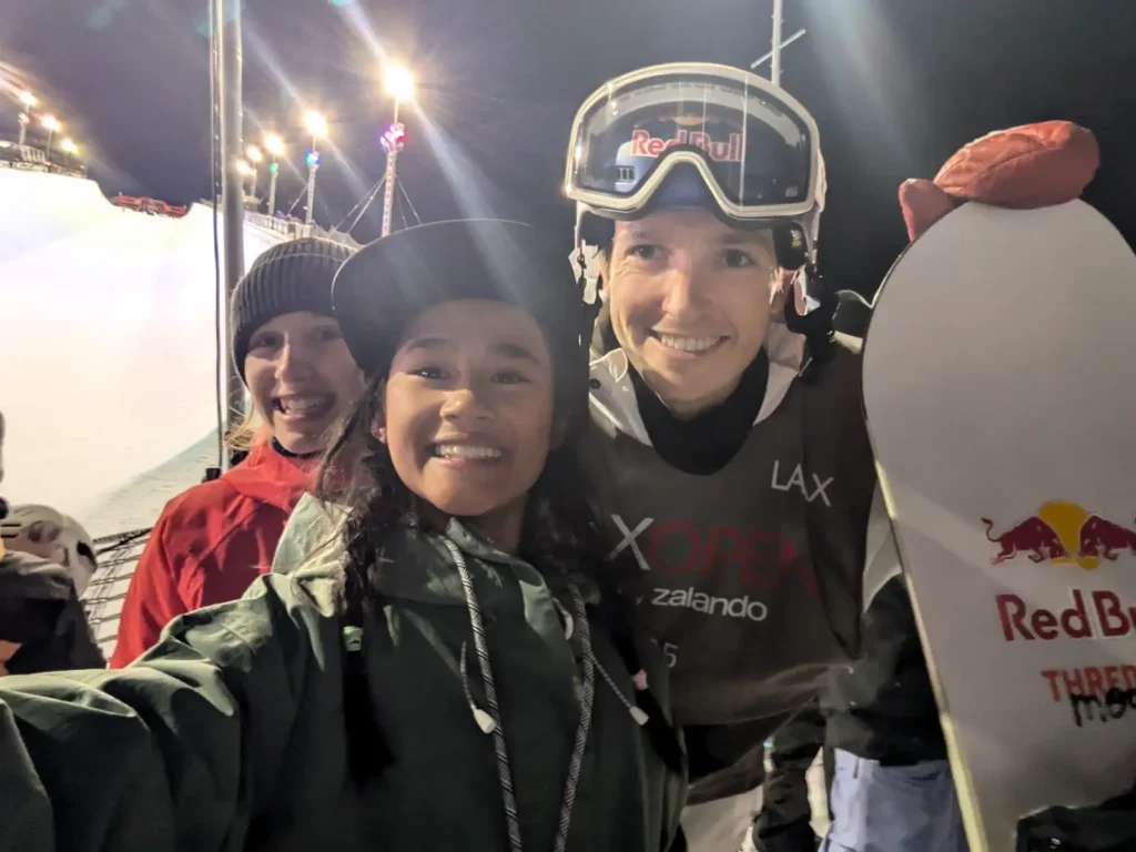 It was a surreal whirlwind of handshakes, smiles, and quick chats. Everyone was so gracious and down-to-earth. And then, the moment that made my inner snowboarder girl absolutely lose it: I actually got to meet Chloe Kim! We chatted for a few seconds (I’m pretty sure I mumbled something incoherent about how much I admire her), and then, get this… she gave me her competition bib! Her actual bib from the LAAX OPEN! I’m pretty sure my jaw hit the snow (if there had been any indoors!). I’m going to frame that thing, it’s a treasure!
