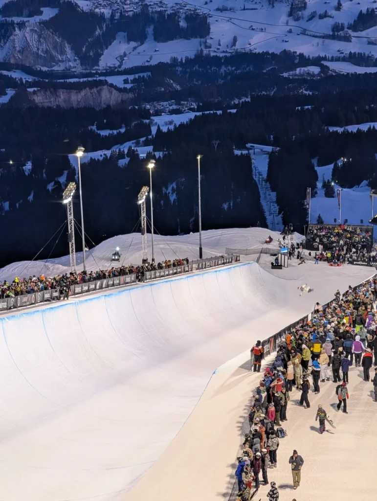 What’s up, shredders! Zazi here, still buzzing like a bee after an absolutely insane weekend, visiting for the first time the legendary LAAX OPEN! I’ve been following the LAAX OPEN for ages. Seeing the absolute best freestyle snowboarders on the planet throw down mind-blowing tricks? It’s always been a bucket list item. And as I am now living in Laax in winter, it actually happened. Not only did I get to witness the spectacle firsthand, but the universe (and my amazing bestie Lela!) seriously conspired to make it the sickest experience I’ll be reliving in my dreams for years to come.